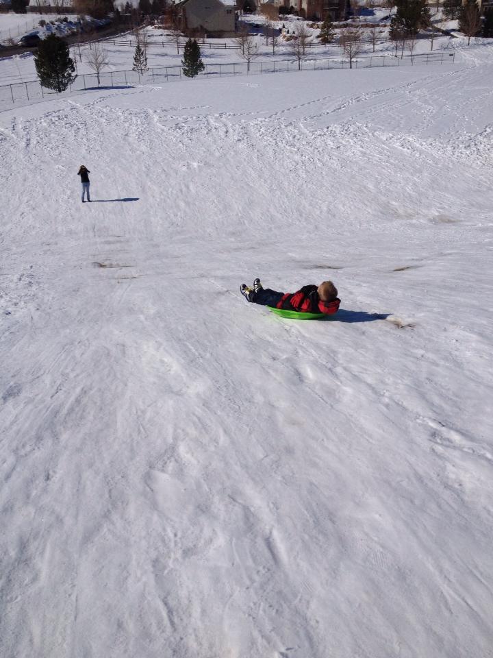 My mom was in town (I just now noticed she is not in ANY of these pictures...she hates posing for the camera...she attempted to video tape the sledding...but it didn't work out so well :).....when she THOUGHT she was recording...she wasn't and when she thought she wasn't...she WAS! lol... Anyway...so the sledding...I thought the kids would be scared it was a pretty steep hill and we have not really been in snow since they've been ALIVE (Vegas , Fl, AZ)....heck no!! Freakin KamiKazis!!!!